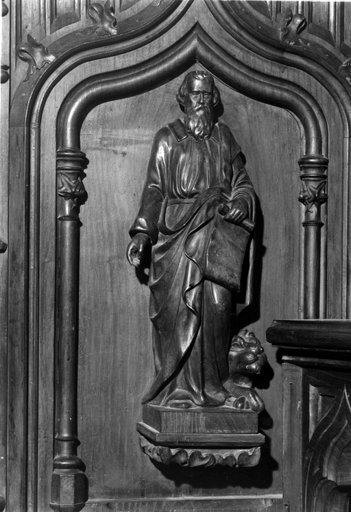 Chaire, détail : statuette de saint MarcImmatriculation