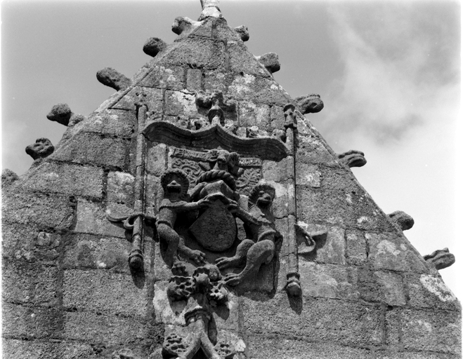 Pignon du bras sud du transept, détail : écu en relief sur le pignon ouestImmatriculation