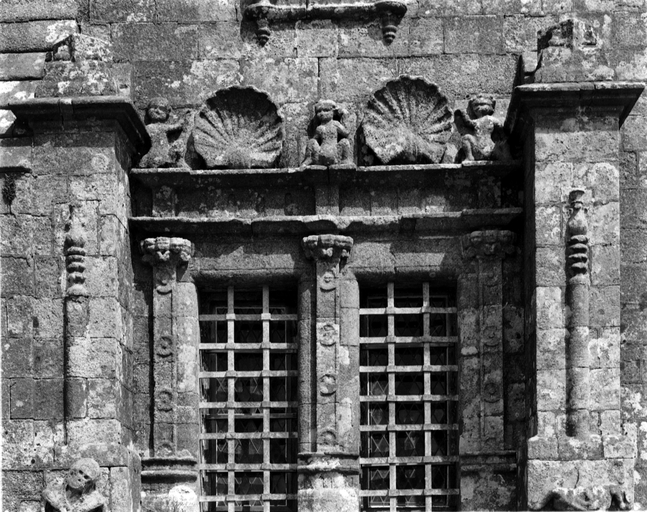 Pignon de la secrétairerie, détail : couronnement des deux niveaux inférieurs d'ouvertureImmatriculation