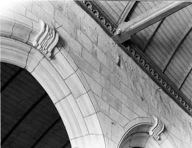 Vue nord de la nef : détail des clefs des deuxième et troisième arcadesImmatriculation