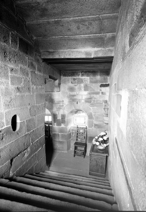 Rez-de-chausée du corps principal : mur est de la cage d'escalier, reposImmatriculation
