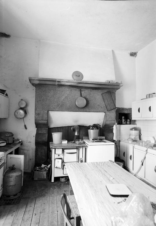 Rez-de-chaussée de l'aile nord : cheminée de la cuisine, mur ouestImmatriculation
