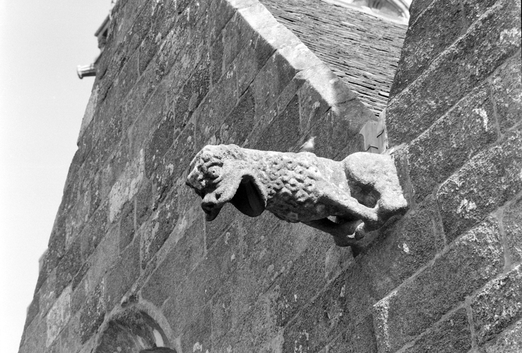 Pignons du bras nord du transept, détail : vue de la gargouille en surplomb entre les deux pignonsImmatriculation