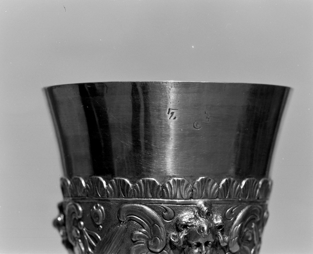 Détail du poinçon sur la coupe du caliceImmatriculation