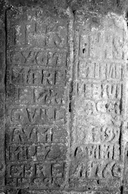 Pierre tombale au niveau des fenêtres ouest de la nefImmatriculation