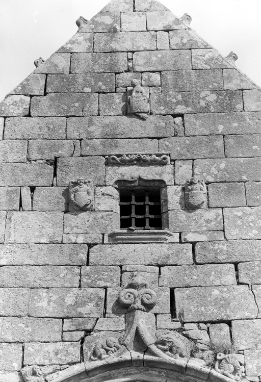 Pignon du porche, détail : fenêtre et reliefs du pignonImmatriculation