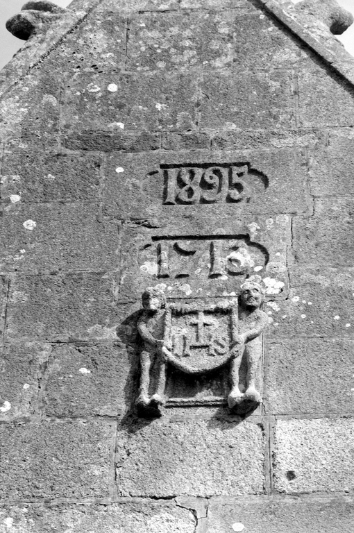 Pignon de la sacristie, détail : dates et relief sur le pignonImmatriculation