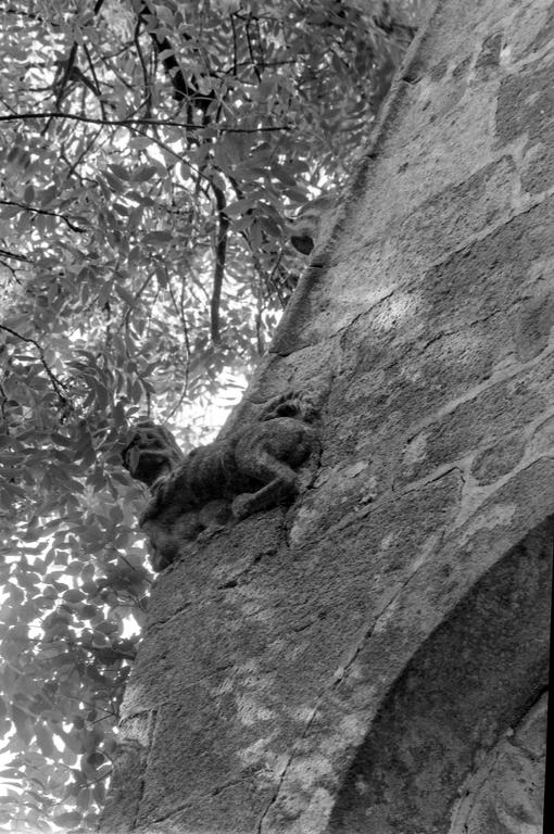Mur nord du bras nord du transept : détail de la pierre d'assise du rampant estImmatriculation