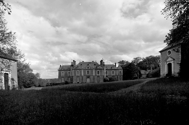 Vue de situation nord du château avec chapelle et pigeonnier.Immatriculation