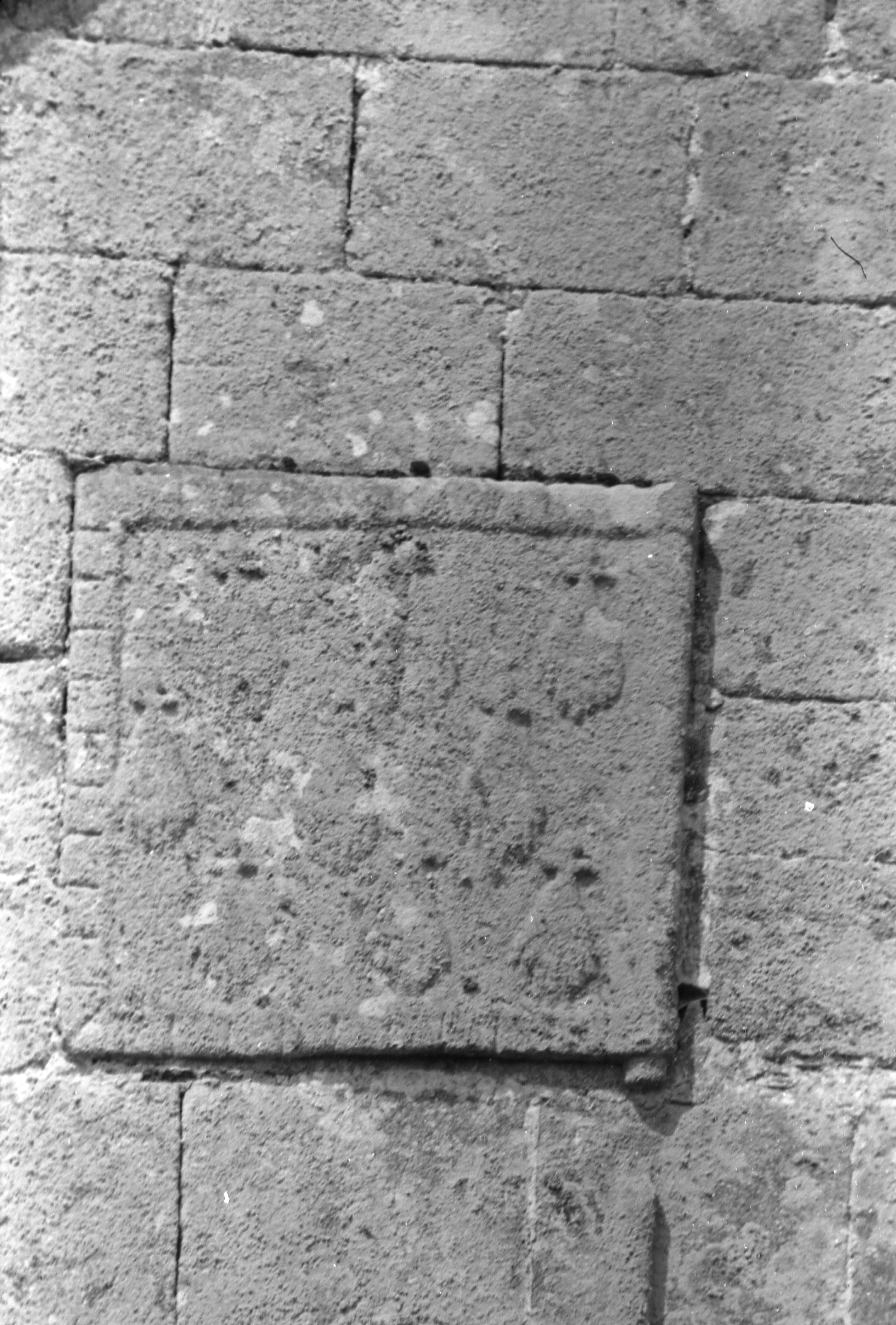 Chevet : détail de la bannière de Bretagne au semis d'hermine.Immatriculation