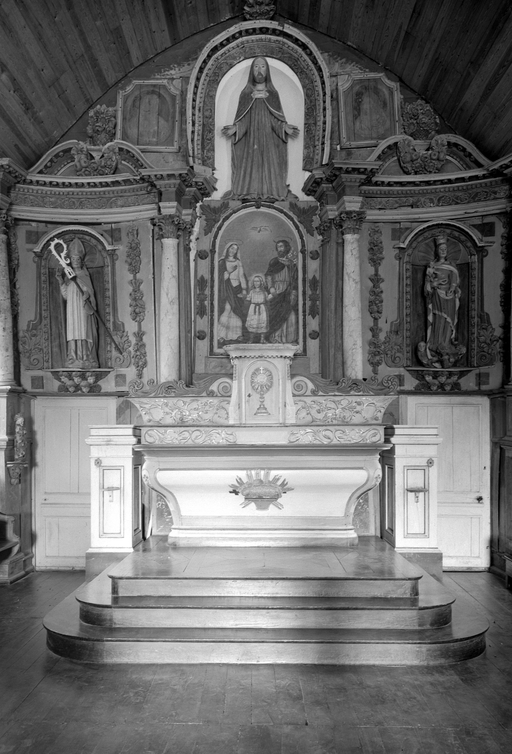 Chevet, mur est, autel et retable : vue généraleImmatriculation