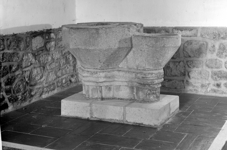 Fonts baptismaux (cuve baptismale à infusion), église paroissiale Saint-Claude (Rostrenen),