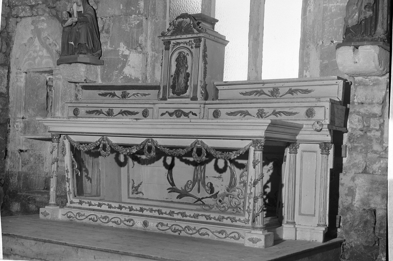 Autel, tabernacle, gradins d'autel (2) (maître-autel, autel tombeau), style Empire, chapelle Notre-Dame (Rostrenen),