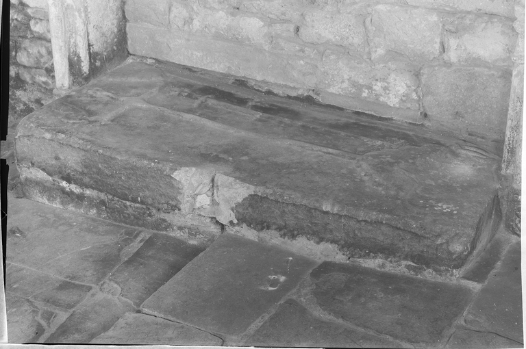 Nef, mur nord, enfeu : détail de la pierre tombaleImmatriculation