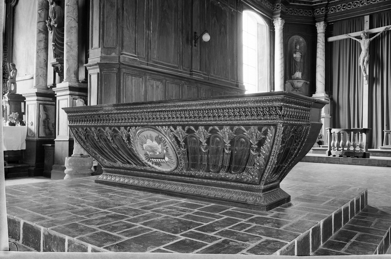 Autels (3), retables (3), tabernacles (2), (maître-autel, autel secondaire, autel tombeau, retable architecturé, tabernacle à ailes), église Paroissiale Saint Pierre (Plouguernével),