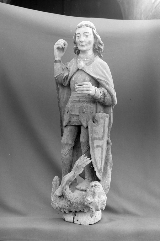 Groupe sculpté (d'applique, petite nature) : saint Michel terrassant le dragon, chapelle Notre-Dame (Rostrenen),