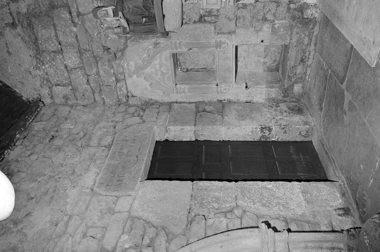 Chevet, murs est et nord : détail de la crédence et de la porte de la sacristieImmatriculation