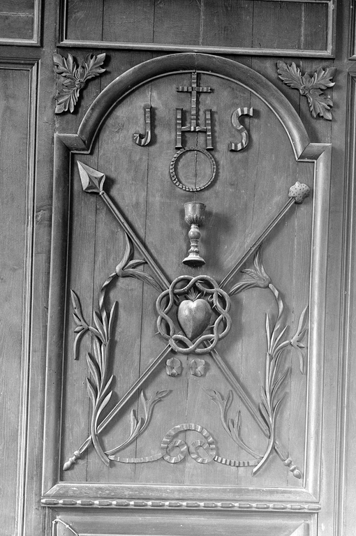 Choeur, lambris, mur sud : détail du panneau centralImmatriculation