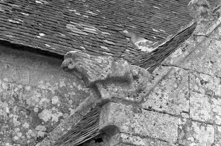 Porche sud, détail de la pierre d'assise sculptée du rampant ouestImmatriculation