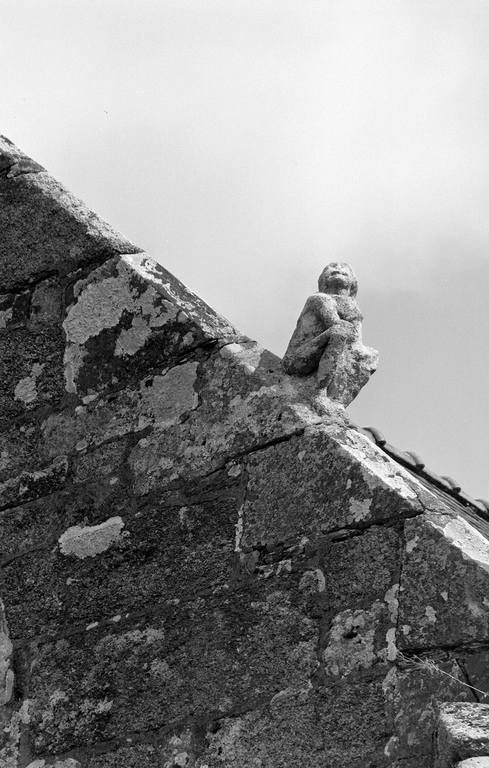 Croisillon nord, rampant ouest du pignon : détail de la figure sculptéeImmatriculation