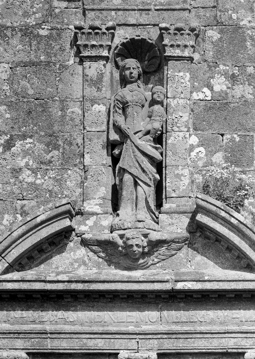 Tour du clocher, face ouest, 2ème niveau : détail de la Vierge à l'enfantImmatriculation