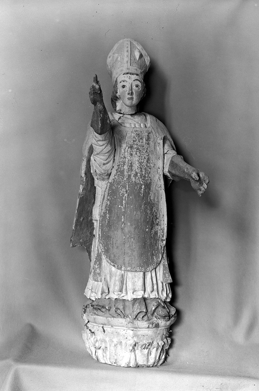 Statue (d'applique, petite nature) : saint évêque (2), chapelle Saint Lubin (Kergrist-Moëlou),