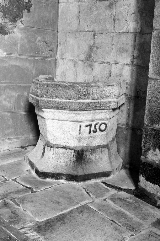 Nef, mur ouest, à gauche de l'entrée : cuve baptismaleImmatriculation