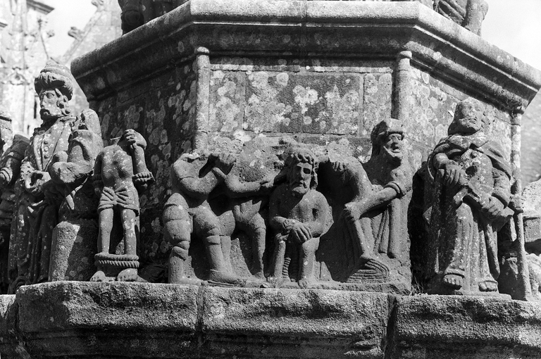 Face sud, 1er socle : Flagellation, Ecce Homo, saint PierreImmatriculation