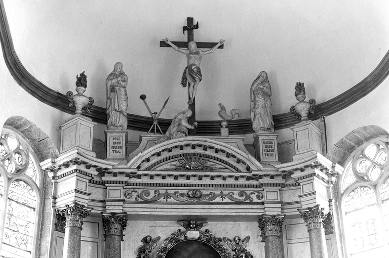 Groupe sculpté (d'applique, grandeur nature) : calvaire, église paroissiale Notre-Dame du Roncier (Rostrenen),