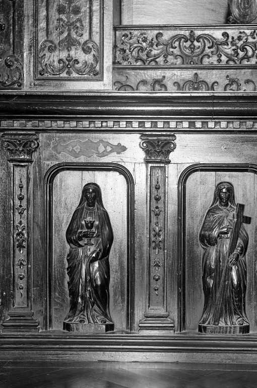 Croisillon sud, mur est, retable : autel, détail des panneaux de gaucheImmatriculation
