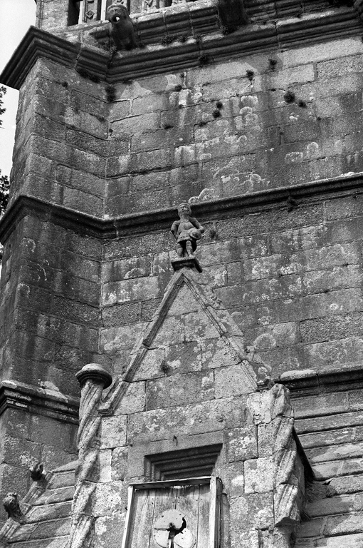 Tour du clocher, face sud : détail de la figure sculptée au faîte de la lucarneImmatriculation