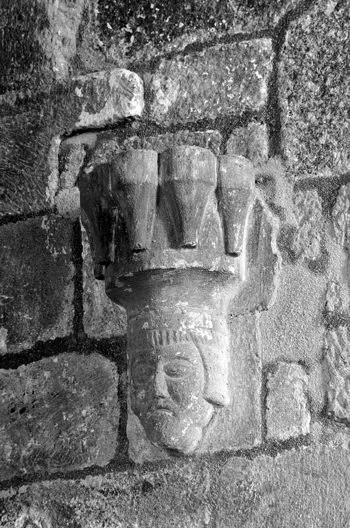 Nef, bas-côté sud, gauche de la porte : détail de la figure sculptéeImmatriculation
