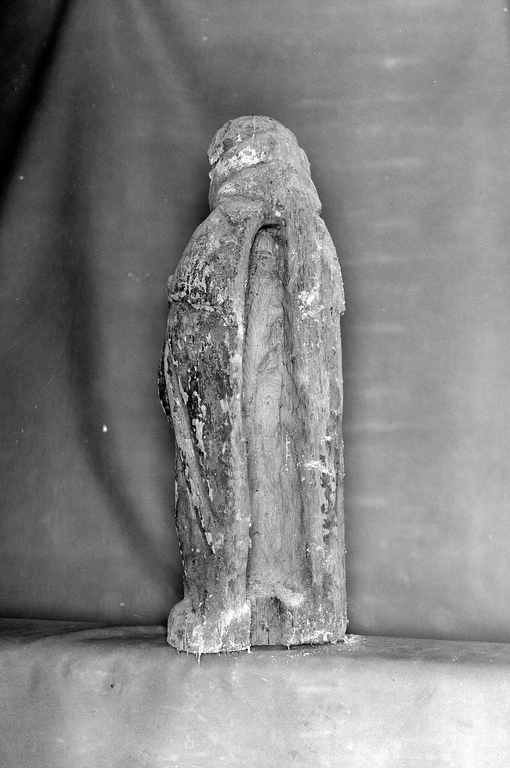 Intérieur, mur est, niche au nord : statuette de moine, vue du reversImmatriculation
