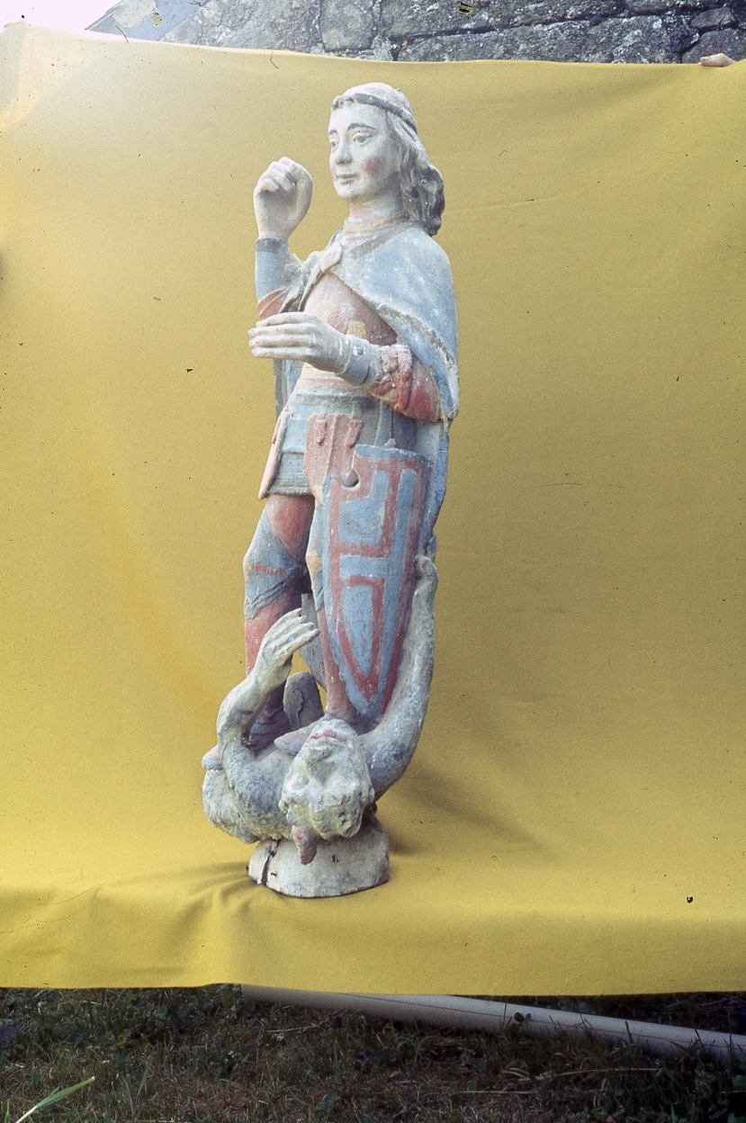Groupe sculpté (d'applique, petite nature) : saint Michel terrassant le dragon, chapelle Notre-Dame (Rostrenen),