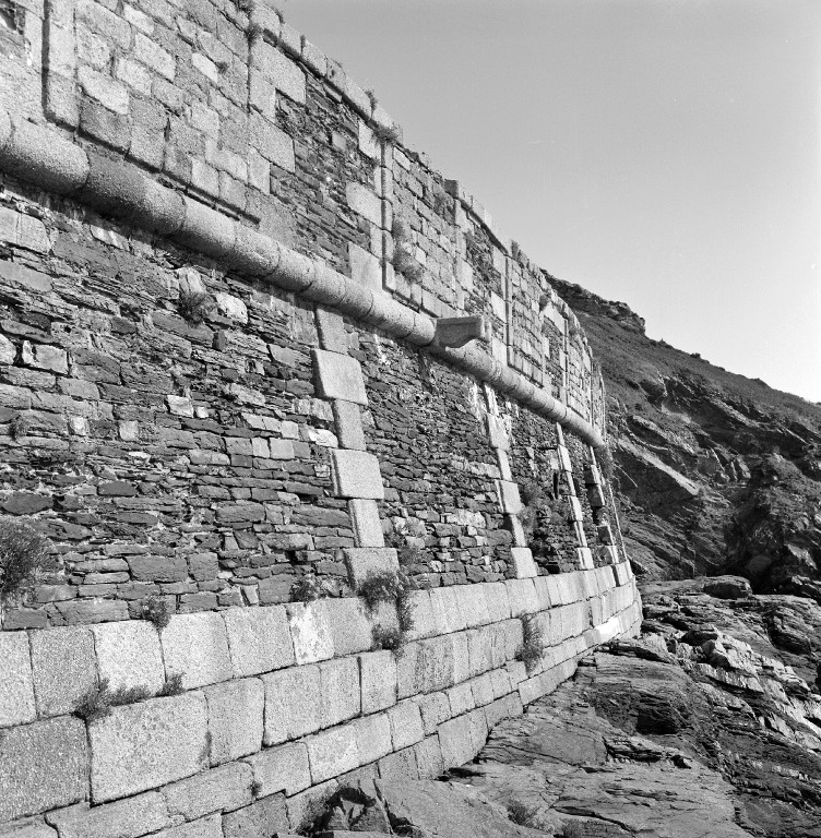 Vue de l'escarpe et du parapet (état en 1969). Marquant la jonction entre l'escarpe et le parapet, le cordon en granite. Les embrasures bouchées témoignent de l'évolution de l'armementImmatriculation