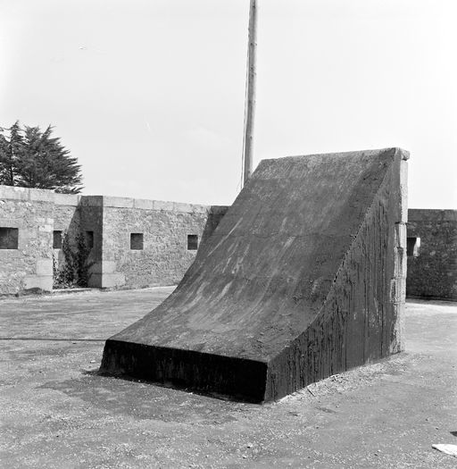Vue du corps de garde crénelé n° 3 du bourg de Roscanvel en 1969 : terrasse, débouché de l'escalier intérieurImmatriculation