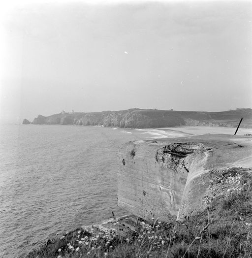 Vue de la batterie de Kerbonn en 1969 : observatoire du bunker - poste de direction de tir de type M162a. En arrière-plan : la pointe du ToulinguetImmatriculation