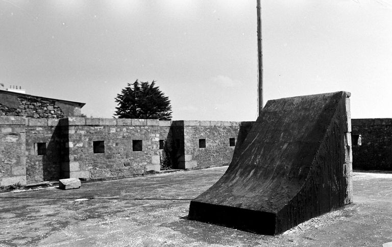 Vue du corps de garde crénelé n° 3 du bourg de Roscanvel en 1969 : terrasse, débouché de l'escalier intérieurImmatriculation