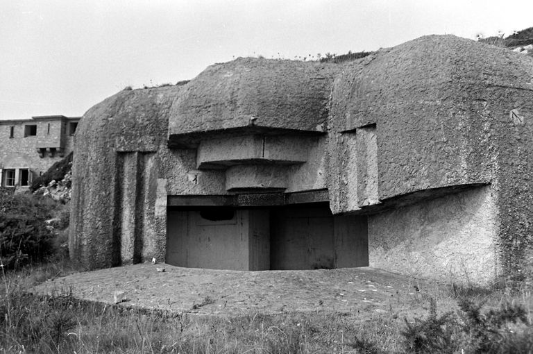 Vue du bunker - casemate de type 671 situé au nord : embrasure surmontée d'un front à redan dit Todt, 1969Immatriculation