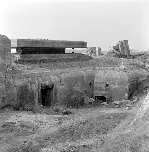 Vue de la batterie de Kerbonn en 1969 : façade arrière du bunker - poste de direction de tir de type M162aImmatriculation