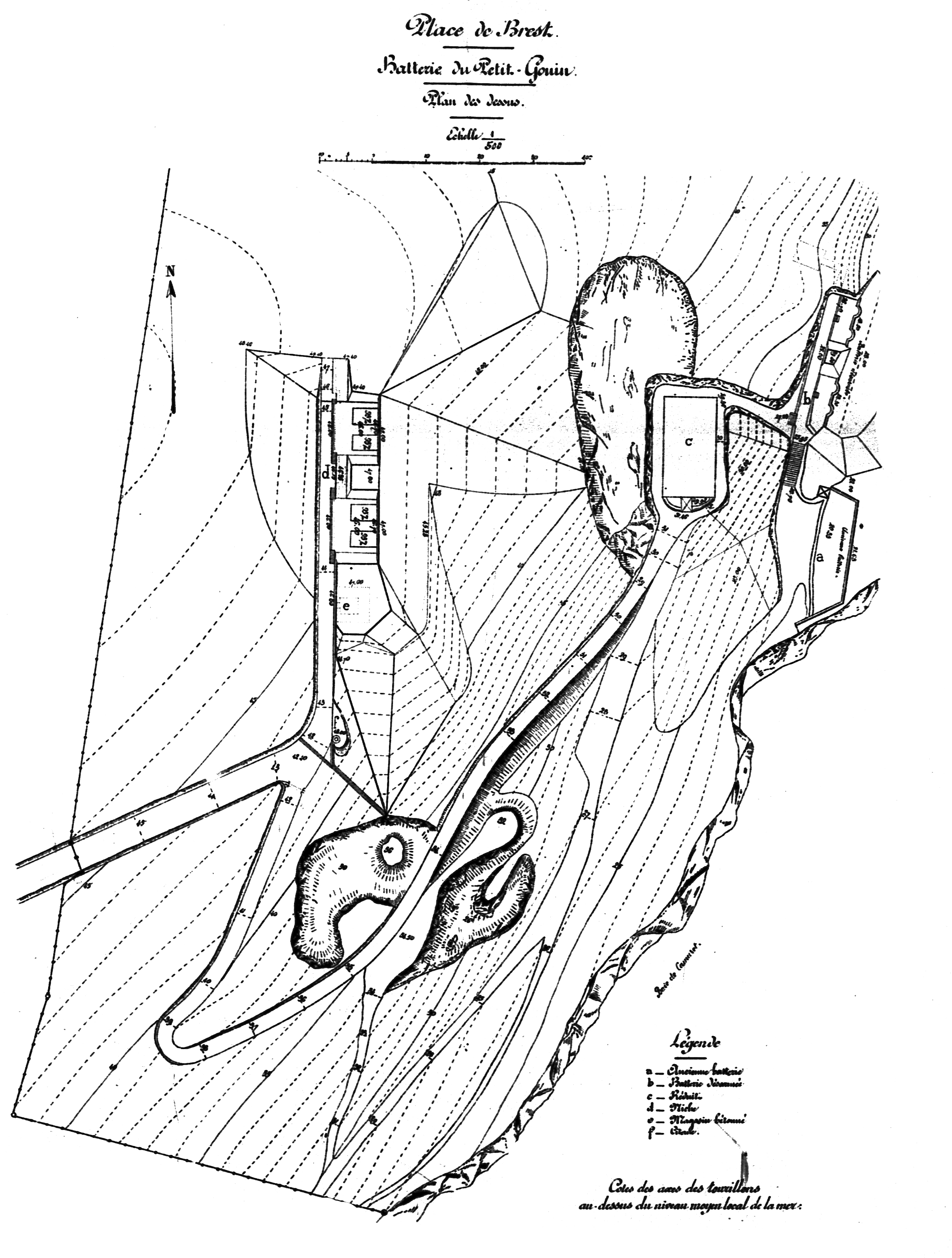 Plan de la batterie de côte et du réduit du Petit Gouin (4 canons de 95 mm)Immatriculation