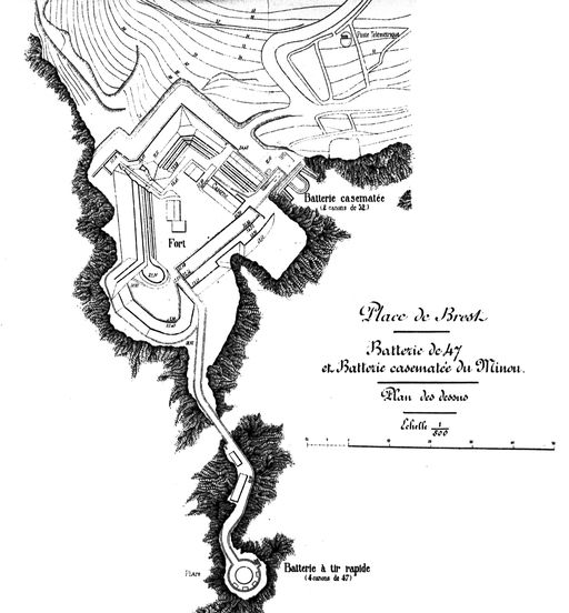 Plan de la batterie de 47 mm et de la batterie casematée du MinouImmatriculation