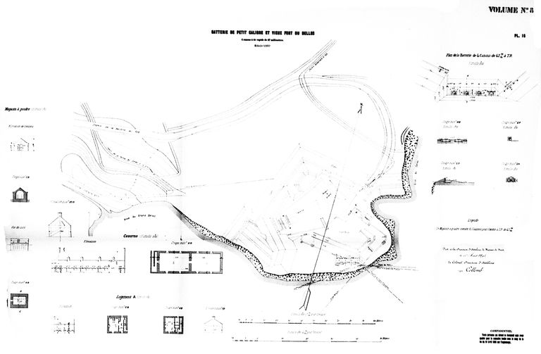 Plan de la batterie à petit calibre et du vieux fort, 1895 (Direction d'Artillerie du génie de Brest, colonel Directeur d'Artillerie Collomb)Immatriculation