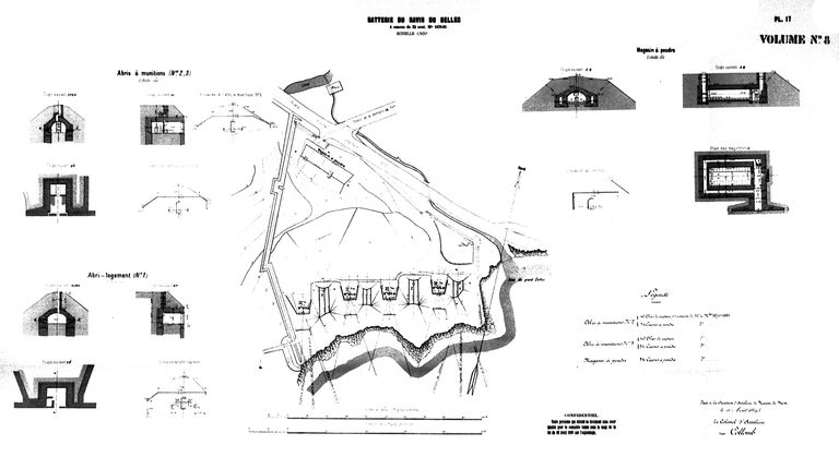 Plan de la batterie de 32 cm du Dellec, 1895 (Direction d'Artillerie du génie de Brest, colonel Directeur d'Artillerie Collomb)Immatriculation