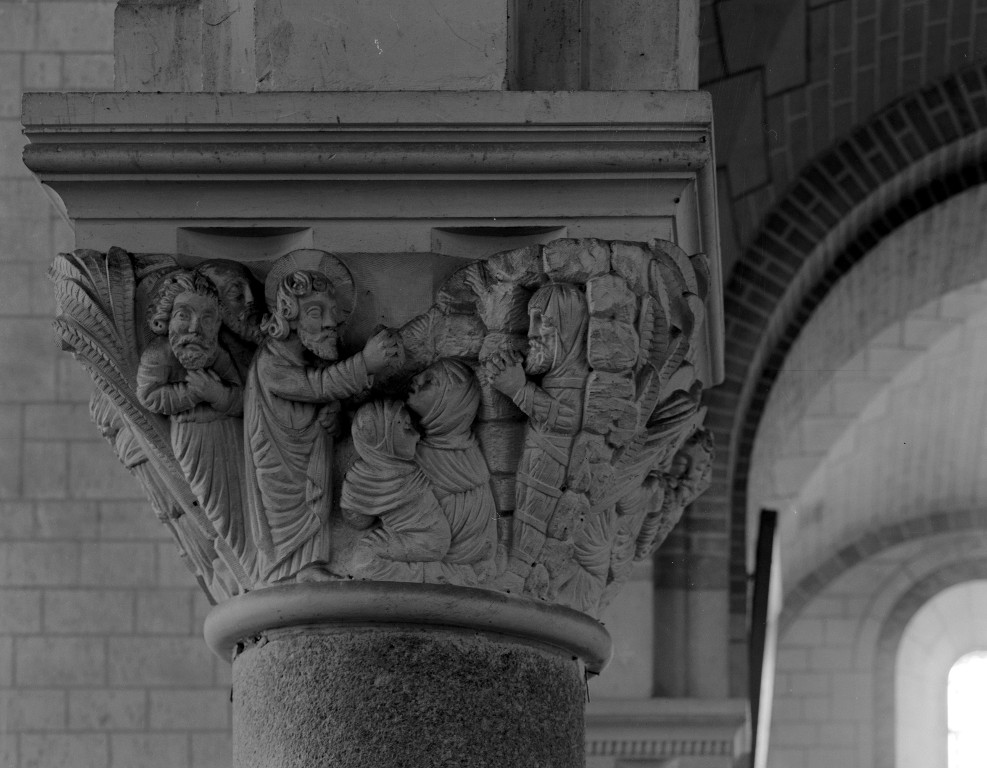 Chapiteau de la nef, 2ème pile nord, face est, résurrection de Lazare.Immatriculation