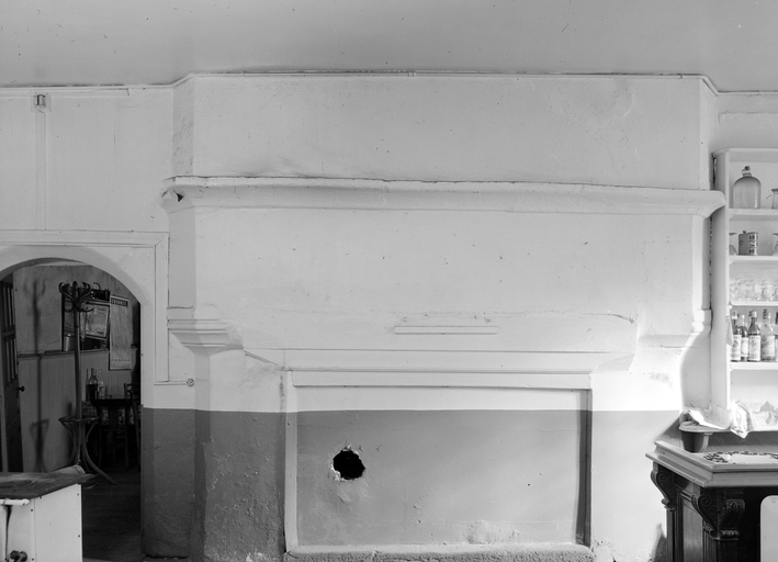 Cheminée contre le mur sud-est de la pièce 1.Immatriculation