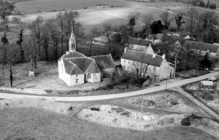 Vue aérienne de situation prise du sud-est (à droite l'ancien presbytère)Immatriculation