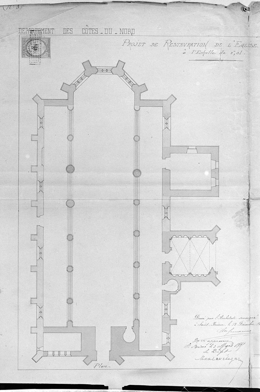 Dossier de restauration établi en 1884 par l'architecte Le Guerranic, planche datée du 13 décembre : détail du planImmatriculation