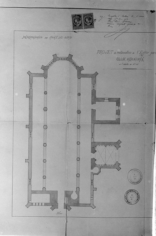 Dossier de restauration établi en 1894 par l'architecte Le Guerranic, planche datée du 7 mars : détail du planImmatriculation