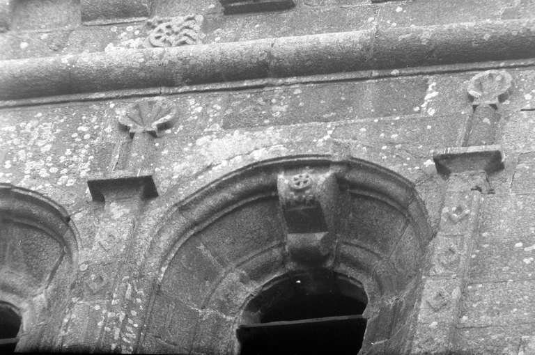 Tour : 3ème niveau, face ouest : détail (clé sculptée de la fenêtre droite)Immatriculation